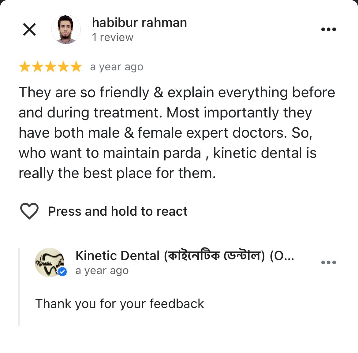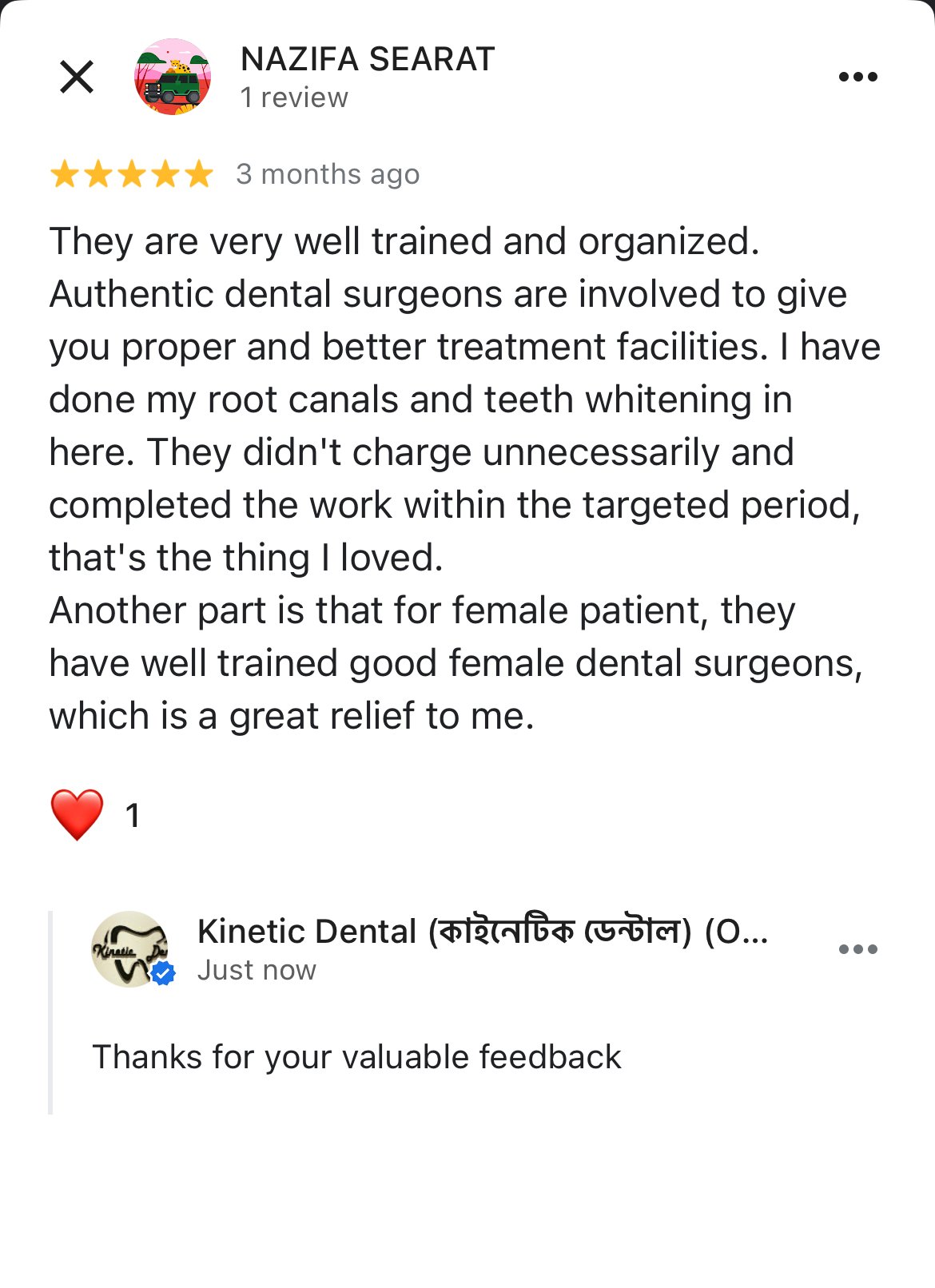 "KINETIC DENTAL" offer you best female & male dental surgeons in Dhaka. We value your trust upon us.